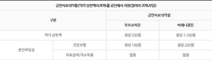 - 금연프로그램을 모두 이수한 경우, 1~2회에 본인이 부담한 비용의 100% 지급